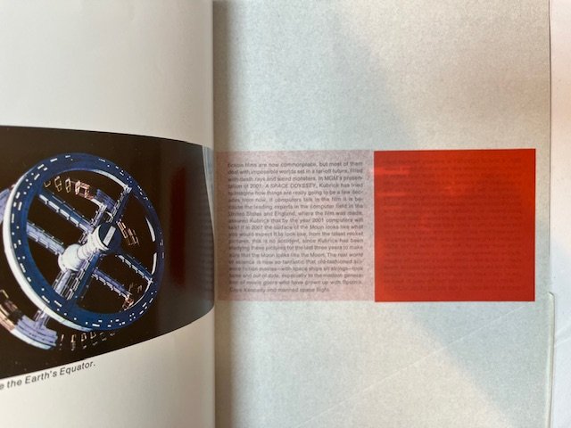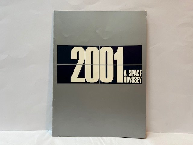First edition. Slim 4to. [24]pp. Illustrated throughout with colour photos. 4 translucent leaves. Original stapled silver coloured pictorial limp card wrapps. Some very minor creasing and slight rubbing to corners and spine. Beautiful design. A program for the film 2001: A Space Odyssey, published in 1968.