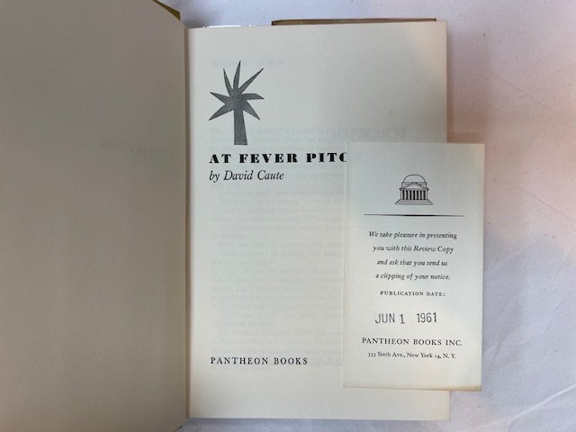 First American Edition. Hardback in dust jacket. With Review Slip loosely inserted. 256pp. Slight softening to spine ends. Minor foxing to tail of text block. Jacket [with a fantastic design by John Alcorn] age-toned and very slightly soiled; some wear to edges. *** The jacket calls this “An explosive comic novel of an African colony on the verge of independence.”. Preceded by the UK edition.
