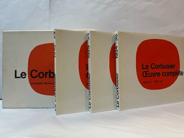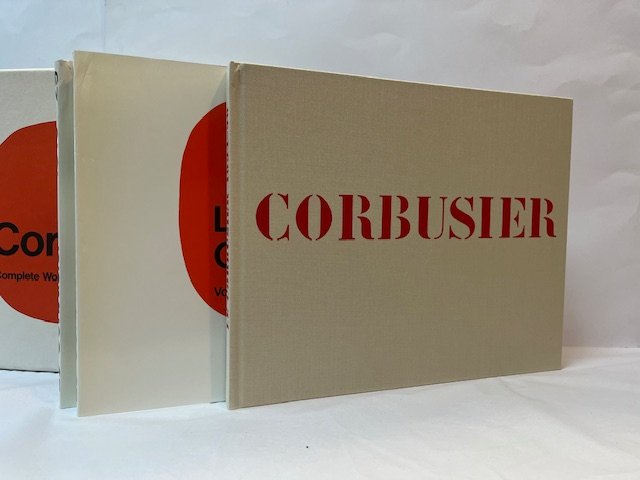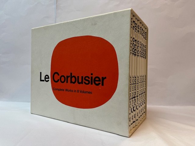 Portrait 4to. 8 volumes in slipcase. Beige cloth boards; red lettering to front and spine. In dust jackets. Vol.1 front of jacket slightly creased; small closed tear to head of upper panel near spine and a small chip to tail of lower panel. Other volumes with slight creasing to head of spine. Slipcase age-toned and very slightly soiled. Otherwise a fine set. *** First slipcased edition of the complete works of Le Corbusier, 1995. (Volumes also published individually; they all have an individual ISBN.) Text in French, English and German. (Some parts only in French.) *** Heavy set: additional postage for non-UK orders might be necessary.