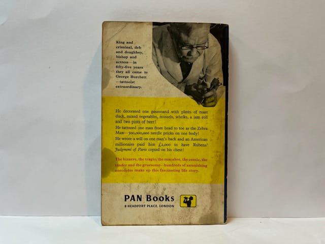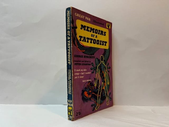 From the Notes, Diaries and Letters of the late ‘King of Tattooists’. Compiled and Edited by Peter Leighton. First Pan paperback edition, 1960. 188pp. + [iv] adverts. 8 ills. from photos. Covers rubbed with some creasing to edges; a little soiled to lower wrapper. Edges of spine scuffed; tiny split to tail of upper joint. Leaves age-toned and with some spotting throughout; slight soiling to fore-edge of advert leaves. *** Memoirs of tattoo pioneer George Burchett (1872-1953). Originally published in hardback by Oldbourne in 1958, this is the first paperback edition from 1960. Great cover art. Scarce. Browned and sl. spotted throughout. Fore edge of advert. leaves sl. stained, lightly soiled, edges of lower wrapp. sl. stained, extremities sl. rubbed, upper leading corner of lower board creased, spine sl. rubbed and chipped with sm. split to tail of upper joint. Pan Books G395
