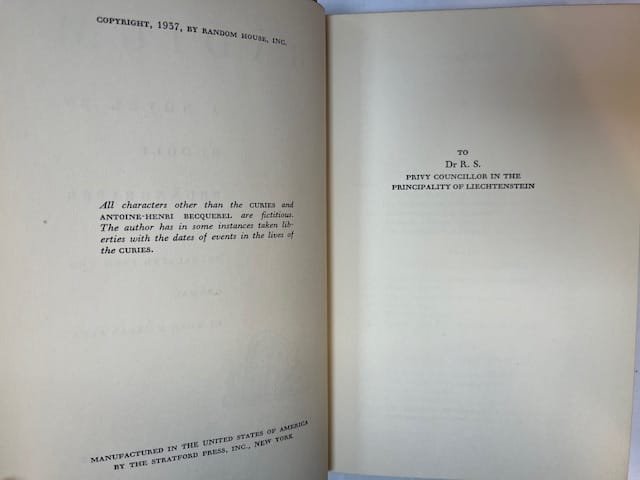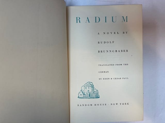 Translated from the German by Eden and Cedar Paul. First US edition. 480pp. Hardback in dust jacket. Two-tone cloth boards with silver lettering to front and spine. Black top-stain. Slight rubbing to edges. Jacket with small pencilled notation to upper panel. A near fine copy. *** A dystopian novel based on the life of Marie Curie and her discovery of radium. The writer speculates where this discovery could take us. A near fine first edition of this obsure sci-fi novel. Published in the UK in the same year by Harrap, London.