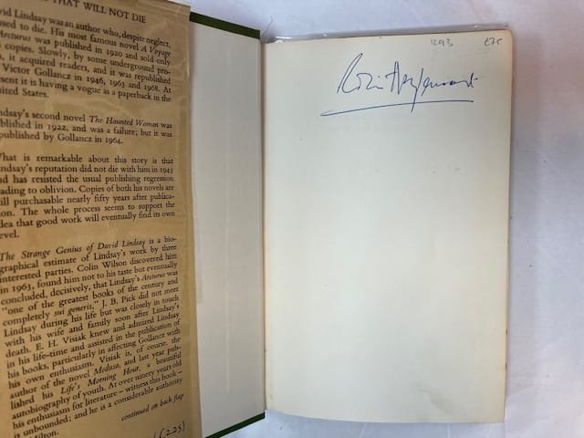 First edition. 183pp. Hardback in dust jacket. Abrasions to tail of board edges. Slight foxing to edges. Name to ffe. Jacket a little rubbed and with a little chipping to extremities; slight fixing to folds. “A biographical estimate of David Lindsay’s work” by Colin Wilson, J.B. Prick and E.H. Visiak. “David Lindsey [1876-1945] was an author who, despite neglect, refused to die.”