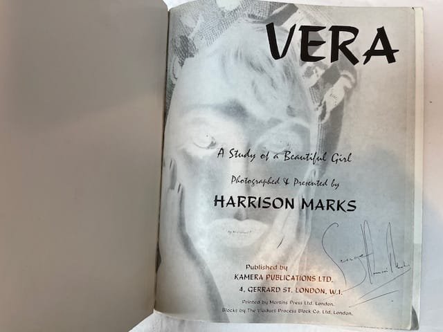 First edition. 4to. [64]pp. Original photo-illustrated boards, lettered to front and spine. SIGNED by George Harrison Marks to title page. Covers rubbed; slight chipping to tail of spine. Corners and tail of spine bumped. White patch to verso of upper board. Circa 60 pages of photographs of actress and glamour model Vera Day, incl. 3 col. plates. Several topless shoots. *** George Harrison Marks (1926-1997) was an English glamour photographer and film director of nudist and pornographic films. Vera Day (born 1933) is an English actress who appeared in dozens of films, including Guy Richie’s Lock, Stock and Two Smoking Barrels.