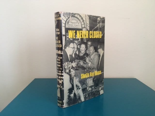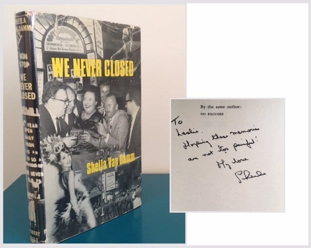First edition. SIGNED and inscribed by the author. (“To Leslie, hoping these memories are not too painful!”) Publisher’s red cloth boards with gilt lettering to spine. The slightest foxing to top-edge of text block. A near fine copy. In very good dust jacket with several tears and chips and some creasing to edges. *** A personal history of London’s famous Windmill theatre written by general manager and producer (and pilot and rally driver…) Sheila Van Damm (from 1960 until it closed in 1964 and temporarily became a cinema). The Windmill Theatre is best known for their provocative and hugely popular nude tableaux vivants and their motto “We Never Closed” (often modified to “We Never Clothed).