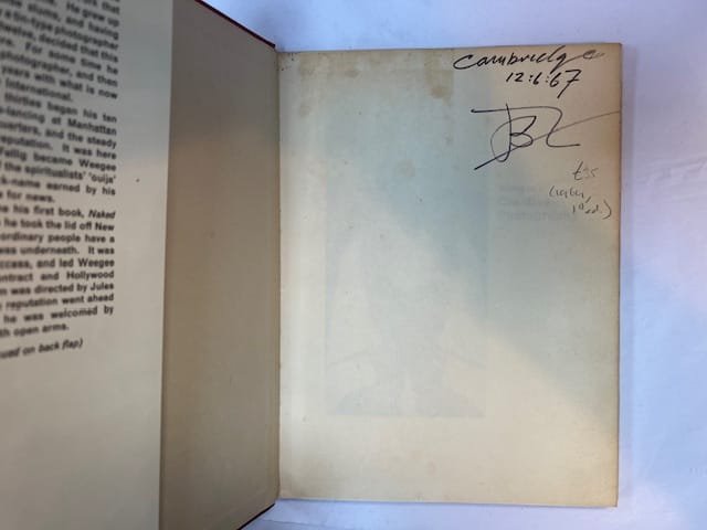 First edition. Large 8vo. Hardback in dust jacket. 64pp. Foxing to edges of text block. Previous owner’s inscription to ffe. Jacket toned and with foxing to verso. *** Manual on creative photography by the legendary American photographer Weegee (Ascher Fellig, 1899 – 1968). A very good copy.